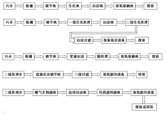 微絮凝效果:臭氧氧化有微絮凝作用,經(jīng)沉淀過(guò)濾能降低污水的SS